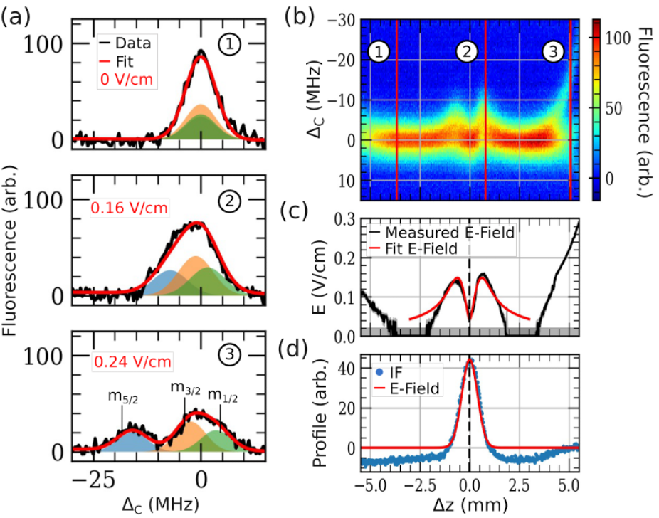 Through this method we have shown that we can reconstruct values of electric field along the sensing volume. The figure here shows how we can reconstruct a value of electric field at each position the camera sees. With this information we can fit the reconstructed electric field to extract parameters of the elctron beam such as current, position and width.